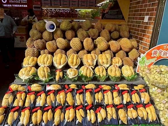 (แฟ้มภาพสำนักข่าวซินหัว : ร้านจำหน่ายผลไม้แห่งหนึ่งในเมืองกุ้ยหยาง มณฑลกุ้ยโจวทางตะวันตกเฉียงใต้ของจีน จำหน่ายทุเรียนที่ขนส่งทางอากาศมาจากไทย)