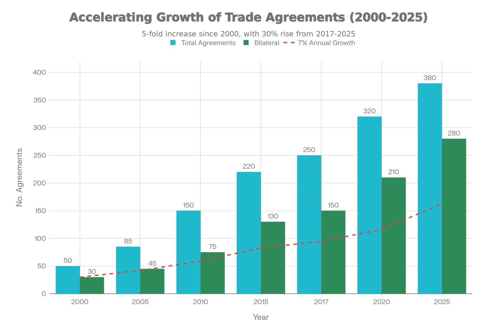 การขยายตัวของข้อตกลงการค้า: การเติบโต 5 เท่าตัวนับตั้งแต่ปี 2543