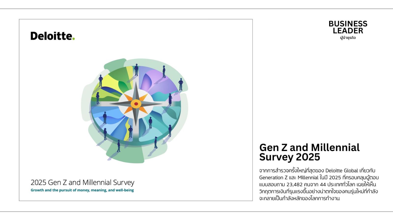 ข้อมูลจาก Deloitte Global 2025 Gen Z and Millennial Survey ที่สำรวจผู้ตอบแบบสอบถาม 23,482 คน จาก 44 ประเทศ ระหว่างวันที่ 25 ตุลาคม - 24 ธันวาคม 2024
